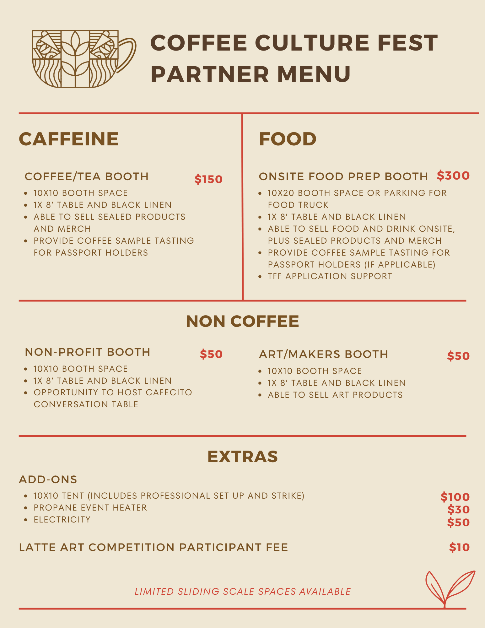 We invite local and regional coffee and tea businesses to be part of our festival marketplace.
